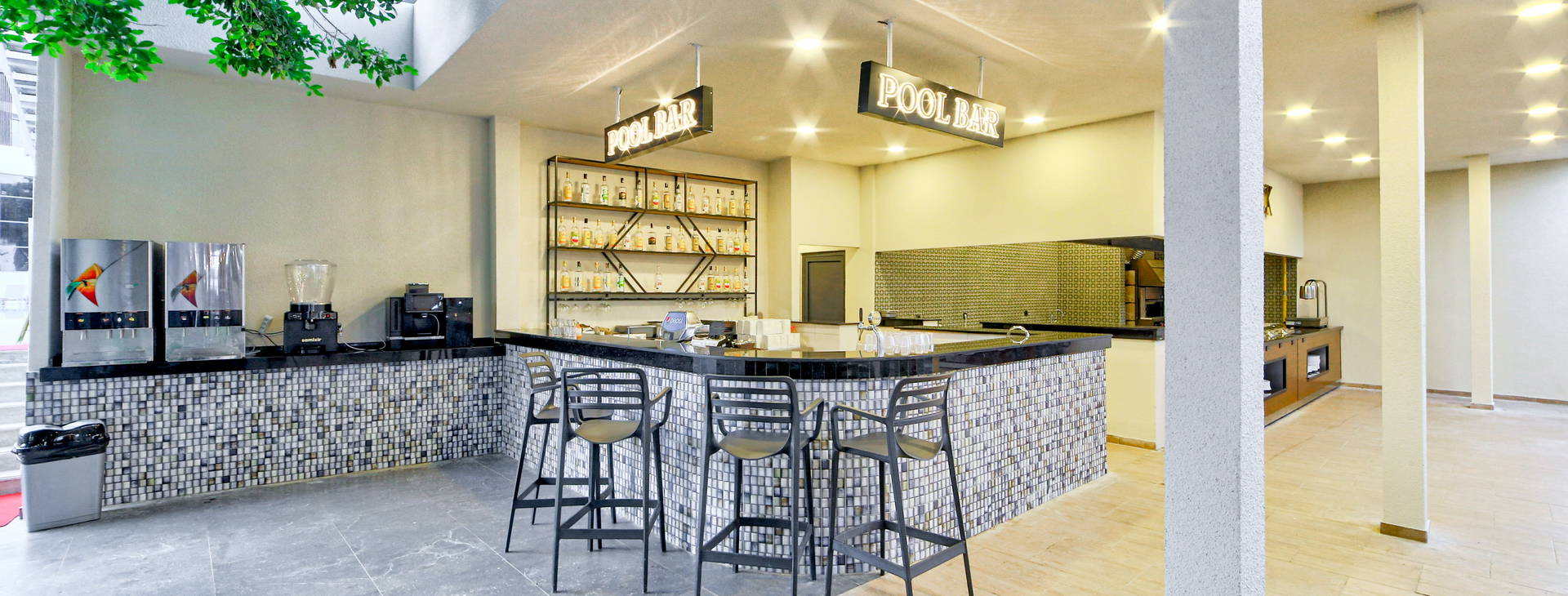 Recepcia, 2 výťahy, vonkajší bazén, vnútorný bazén, 2 detské bazény, aquapark, 2 reštaurácie, 3 bary (lobby bar, bar pri bazéne a bar na pláži), sauna, SPA, fitnescentrum.