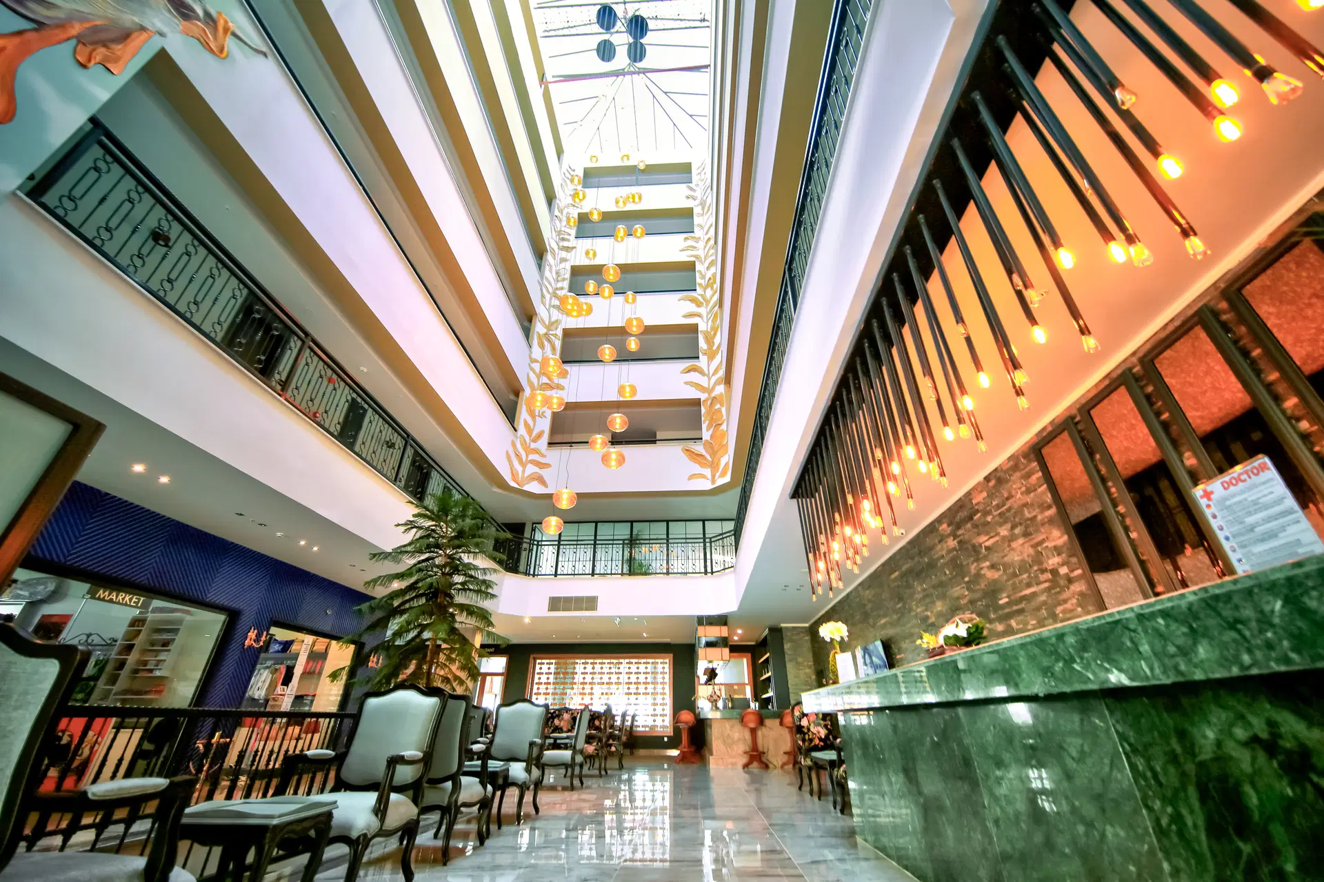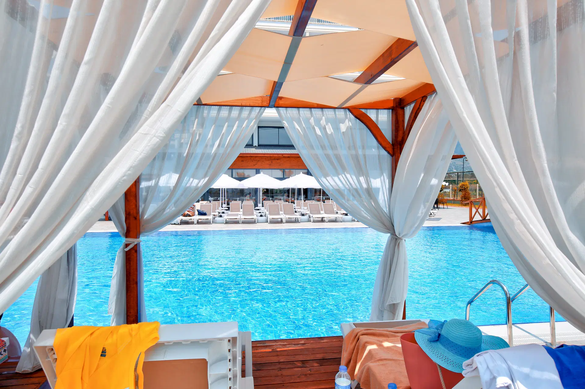 .24-hodinová recepcia, priestranná vstupná hala, výťahy, úschovňa batožiny, knižný kútik, hlavná reštaurácia s miestnou a medzinárodnou kuchyňou, plážová reštaurácia s tureckými palacinkami a reštaurácia s občerstvením. 2 bary: pri bazéne a na pláži, 4 bazény: hlavný bazén, bazén s tobogánom, detský bazén, krytý bazén a parkovisko. Za poplatok: požičovňa áut, práčovňa, lekár a obchody.