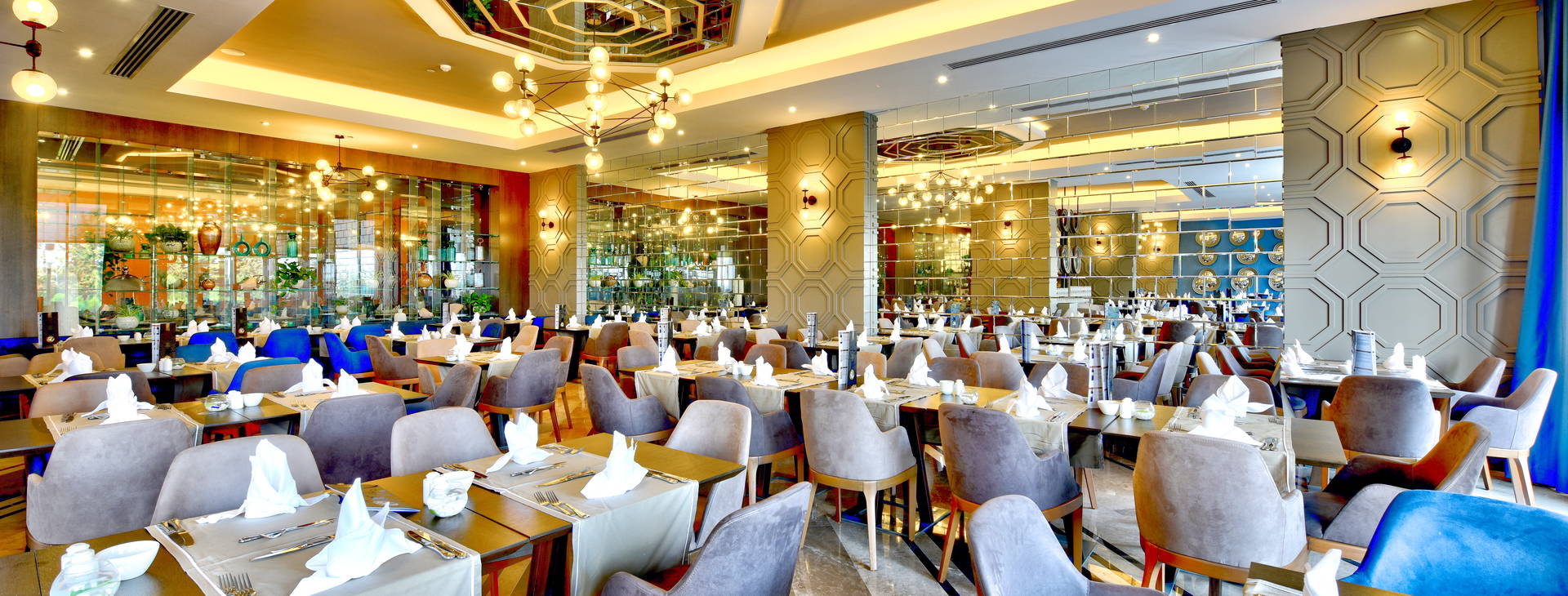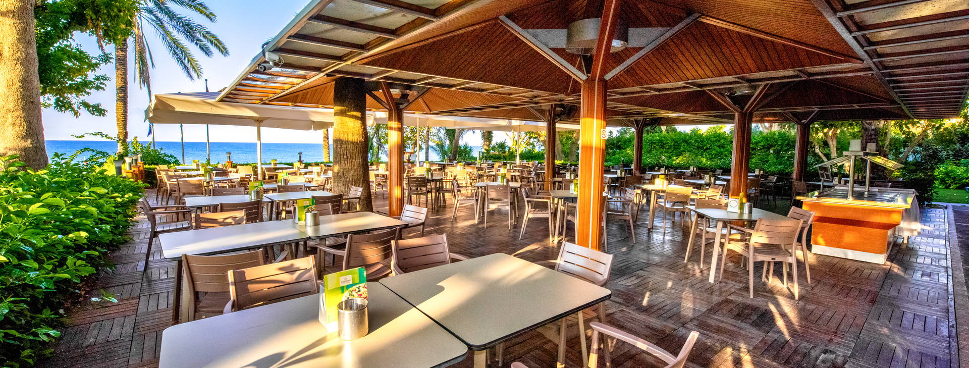 .24-hodinová recepcia, lobby, výťahy, hlavná reštaurácia, a'la carte reštaurácie: rybia, turecká, čínska, talianska (každá je k dispozícii raz za pobyt, rezervácia nutná), 6 barov vrátane: lobby baru, disco baru, snack baru, kaviarne, 3 bazény vrátane relaxačného (pre osoby staršie ako 18 rokov), detské brodítko, krytý vyhrievaný bazén. Ležadlá, slnečníky a osušky pri bazéne k dispozícii zdarma.