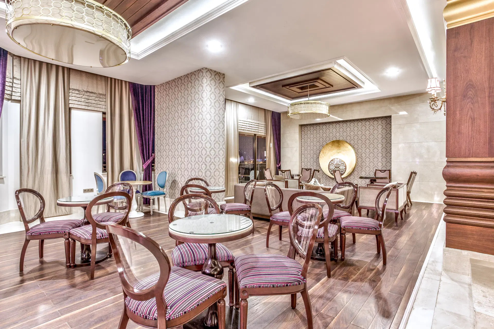 Hodinová recepcia, výťah, priestranná vstupná hala, hlavná reštaurácia, 3 reštaurácie a'la carte (podávajúce osmanskú a tureckú kuchyňu, taliansku kuchyňu a ryby a morské plody), 7 barov vrátane plážového, bazénového a lobby, hlavný bazén, poloolympijský bazén, bazén so šmykľavkami (otvorený v určitých časoch), vnútorný bazén a detské vonkajšie a vnútorné detské brodítko. Za príplatok je k dispozícii kaderníctvo a obchody.