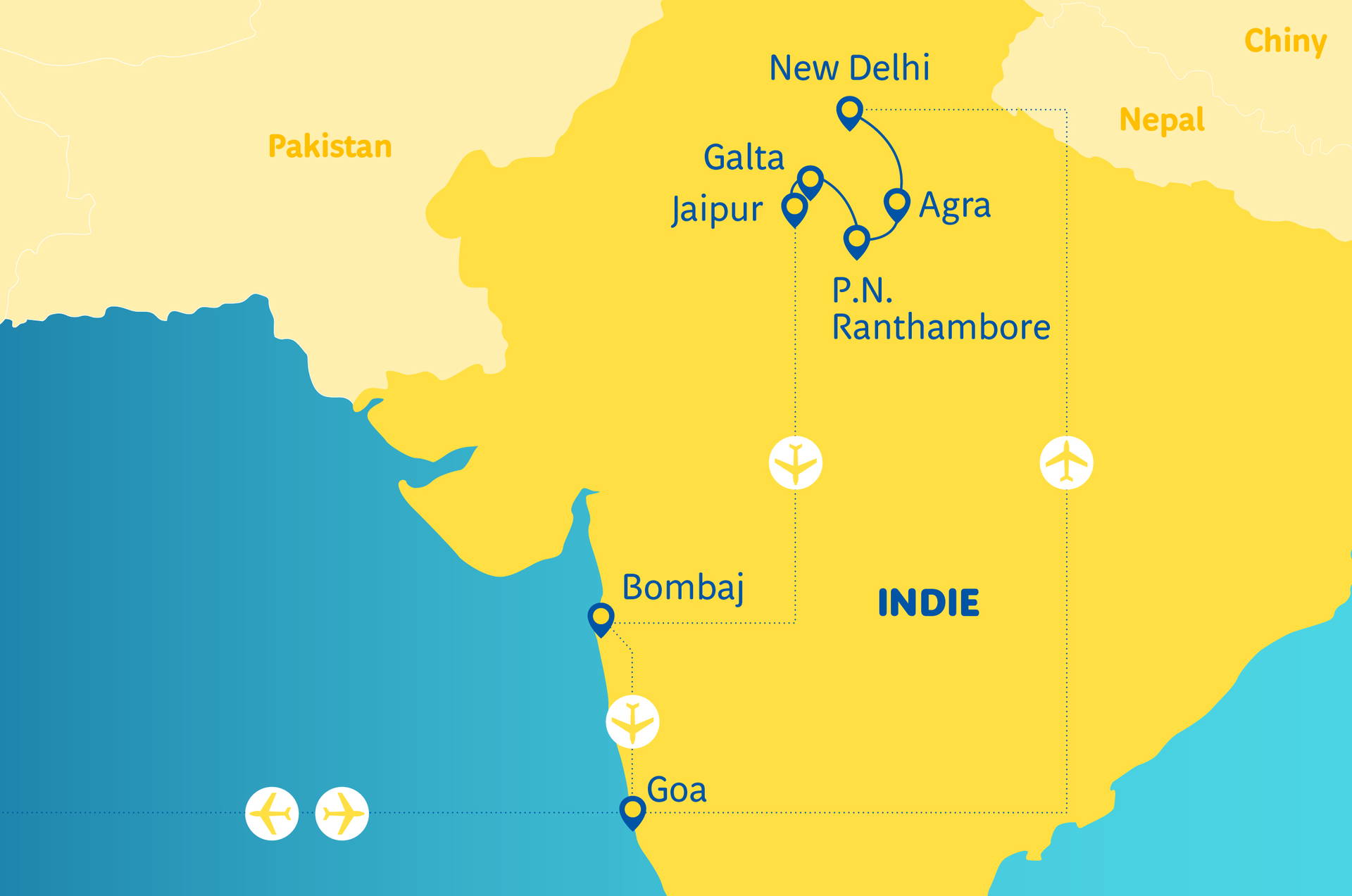 Poznámka!Přečtěte si pozorně všechna oznámení Travelli týkající se vstupu a víz do Indie!
