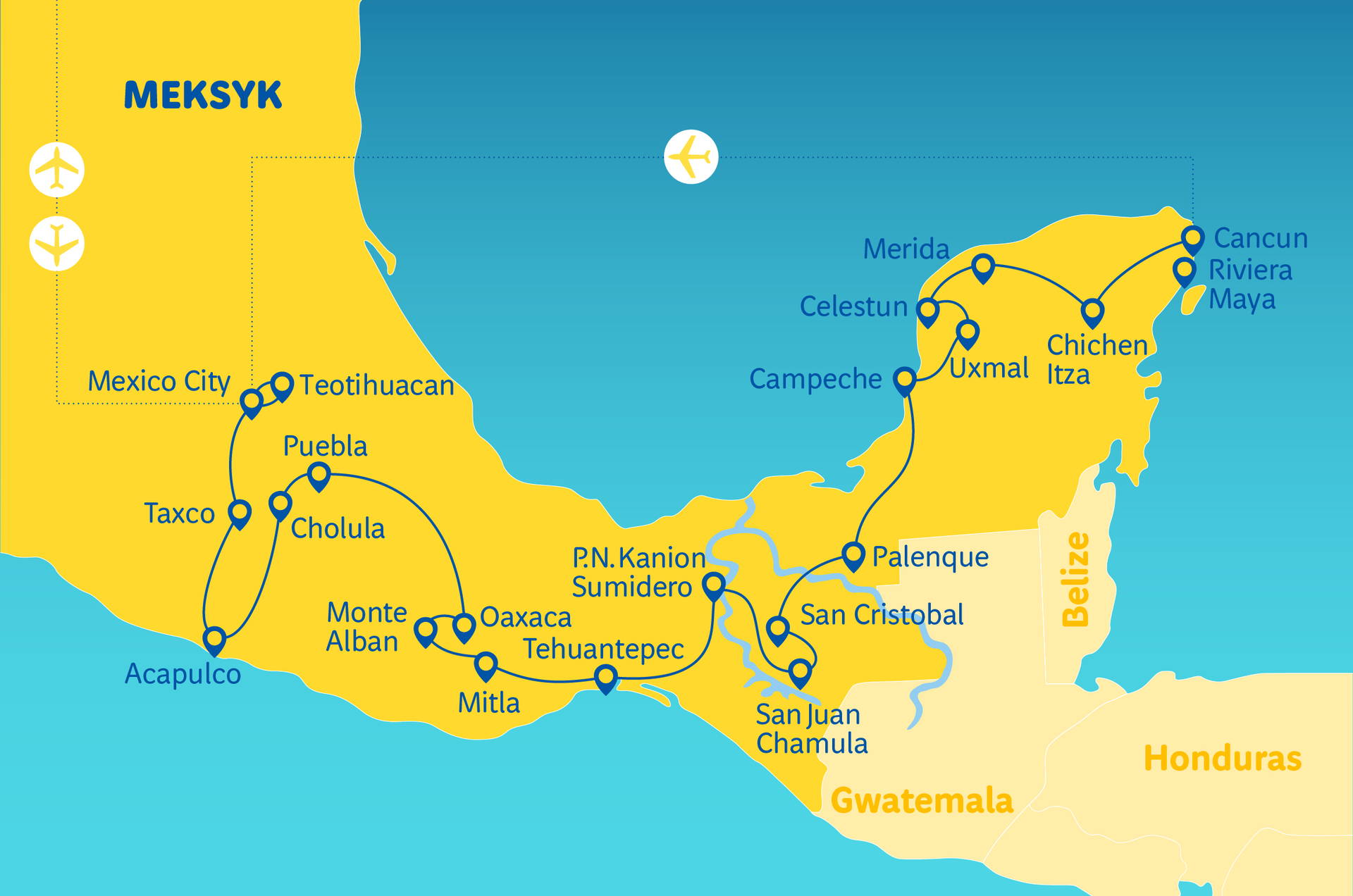 Název zájezdu v polském jazyce: Wielka, meksykańska wyprawa - przelot samolotem rejsowym