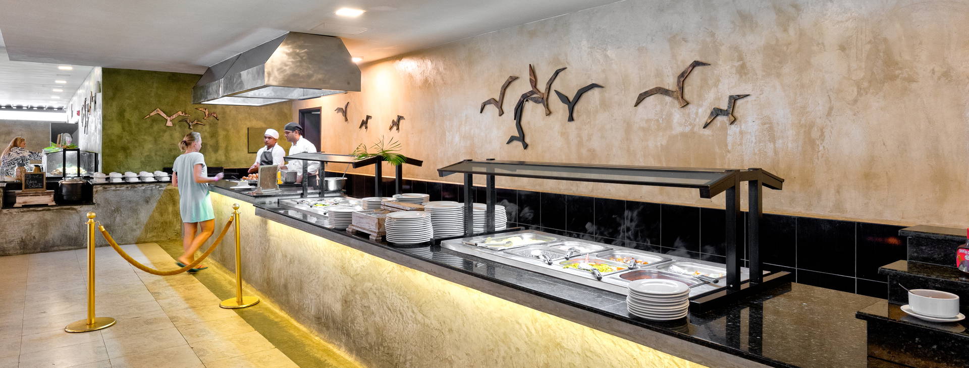 Súčasť All Inclusive zahŕňa: raňajky (07:00-10:00) - bohatý bufet, obedy (12:30-14:30) a večere (18:30-22:00) - bufet, snack bar (o 16:00 a 23:30), plážový bar all inclusive. V reštaurácii a bare regionálne alkoholické a nealkoholické nápoje (10:30-01:00).