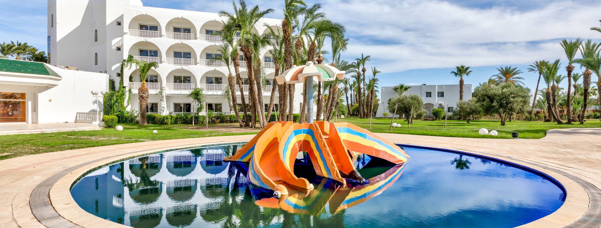4-hviezdičkový moderný hotel sa nachádza v udržiavanej palmovej záhrade, v známej a pokojnej turistickej štvrti Skanes, cca 7 km od historického centra Monastiru s mnohými barmi a trhmi (cca 5 EUR miestnym taxíkom alebo miestnym autobusom), cca 15 km od centra Sousse (cca 6 EUR miestnym taxíkom), cca 50 km od letiska Enfidhi a cca 1 km od letiska Monastir. Poznámka Cena nezahŕňa miestnu turistickú daň 12 TND/osoba/deň. Maximálna turistická daň sa počíta za 15 po sebe nasledujúcich hotelových nocí aj pri dlhších pobytoch. Osoby mladšie ako 12 rokov sú od platenia turistickej dane oslobodené. Daň je povinná a je potrebné ju zaplatiť priamo na recepcii pred ubytovaním klientov v hoteli.