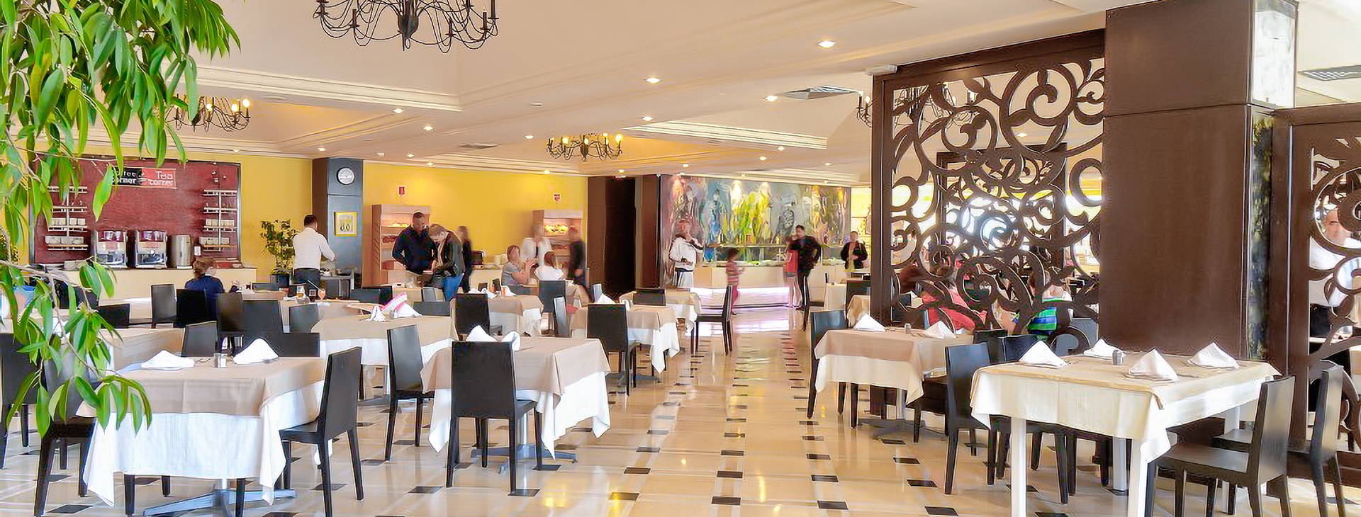 All Inclusive: raňajky (6:00-10:00), obed (12:30-14:00) a večera (18:30-21:00) formou bufetu. Nealkoholické nápoje počas jedla v cene. Občerstvenie a alkoholické a nealkoholické nápoje, káva, čaj sú k dispozícii v baroch umiestnených v celom objekte. 1x za pobyt možnosť využitia talianskej reštaurácie a la carte (nutná predchádzajúca rezervácia).