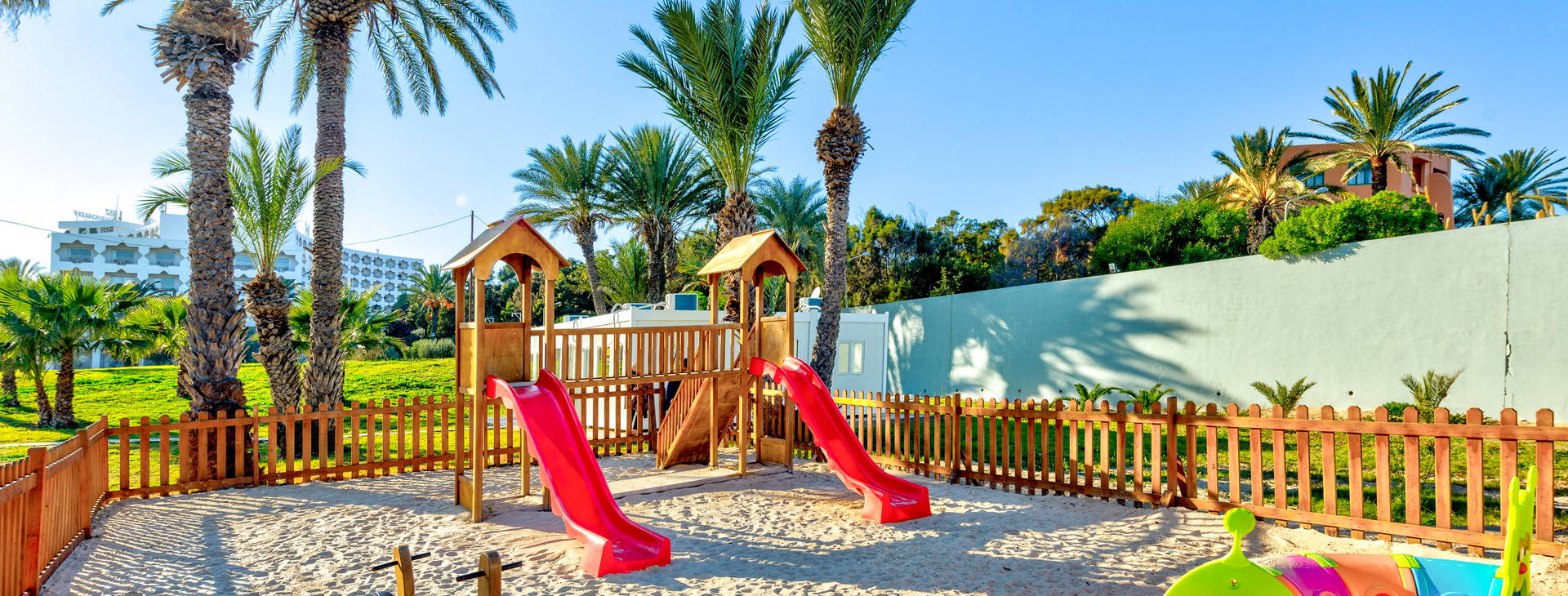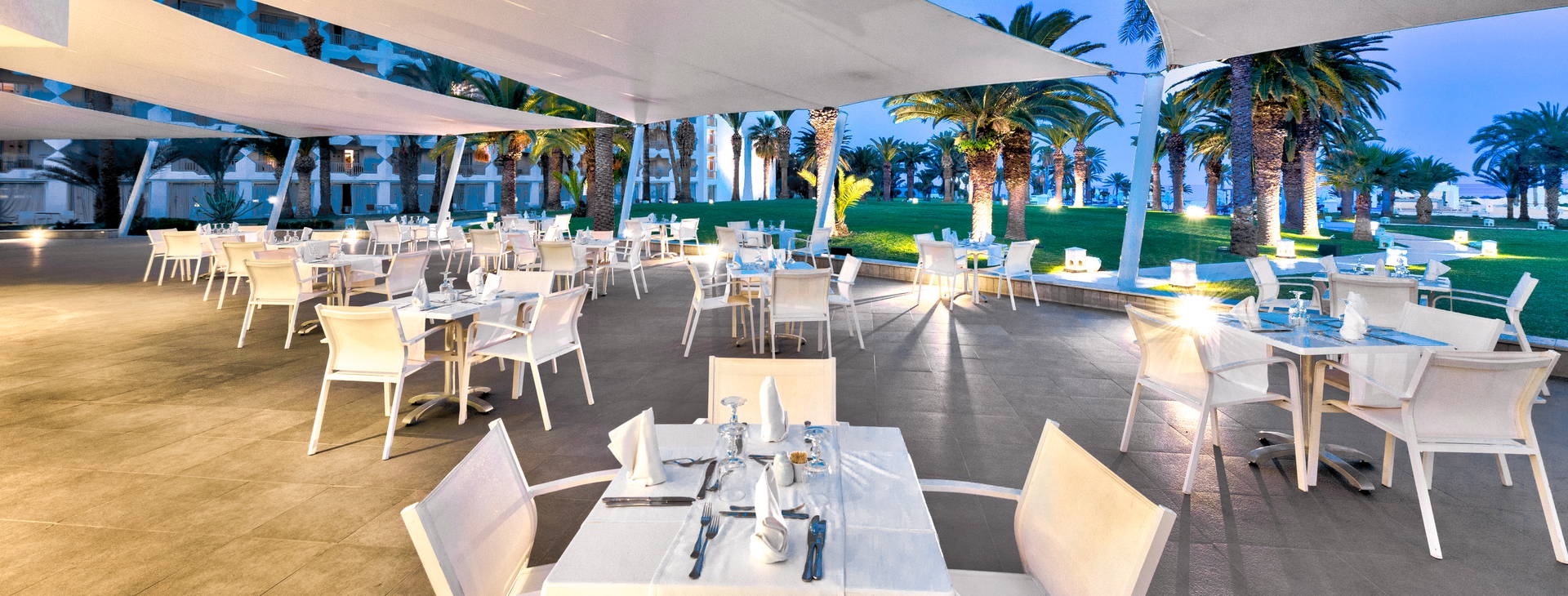 24-hodinová recepcia s trezorom (za poplatok) a zmenárňou, vstupná hala, výťahy, hlavná reštaurácia, reštaurácia a'la carte, maurská kaviareň, 6 barov (lobby bar za poplatok). V záhrade sa nachádzajú 2 bazény, jeden so šmykľavkami, detské brodítko a slnečná terasa s ležadlami a slnečníkmi (zdarma). V hoteli sa nachádza aj požičovňa áut, kaderníctvo, práčovňa, konferenčná miestnosť, obchod so suvenírmi a minimarket, wellness centrum, vírivka, masáže, procedúry a sauna (všetko za poplatok). Pre deti: detské ihrisko, herňa a miniklub. Hotel prijíma kreditné karty.