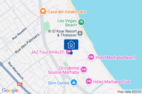 Hotel Jaz Tour Khalef sa nachádza vo veľkej palmovej záhrade, v pešej vzdialenosti od mnohých obchodov, reštaurácií a mnohých ďalších zariadení. Historické centrum mesta Sousse je vzdialené len asi 3 km (dostanete sa sem miestnym taxíkom). Medzinárodné letisko Enfidha-Hammamet je vzdialené približne 40 km od hotela. UPOZORNENIE! Cena zájazdu nezahŕňa miestnu turistickú daň vo výške 3 TND/osoba/deň. Maximálna výška turistickej dane sa počíta za 7 po sebe nasledujúcich nocí, a to aj v prípade dlhšieho pobytu. Osoby mladšie ako 12 rokov sú od platenia pobytovej taxy oslobodené. Pobytová taxa je povinná a platí sa priamo na recepcii pred ubytovaním klientov v hoteli.