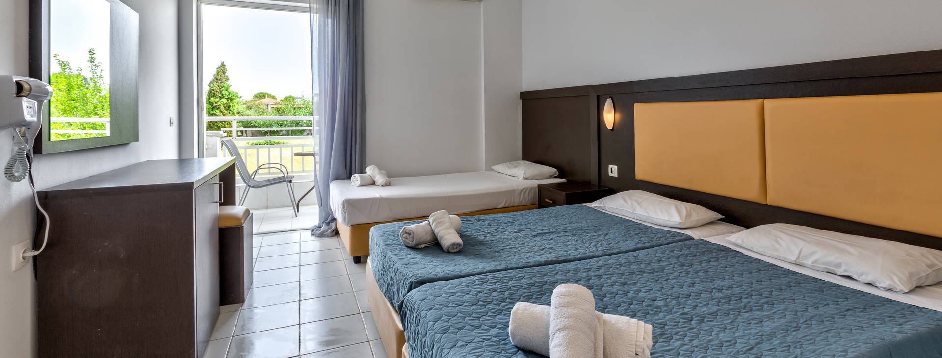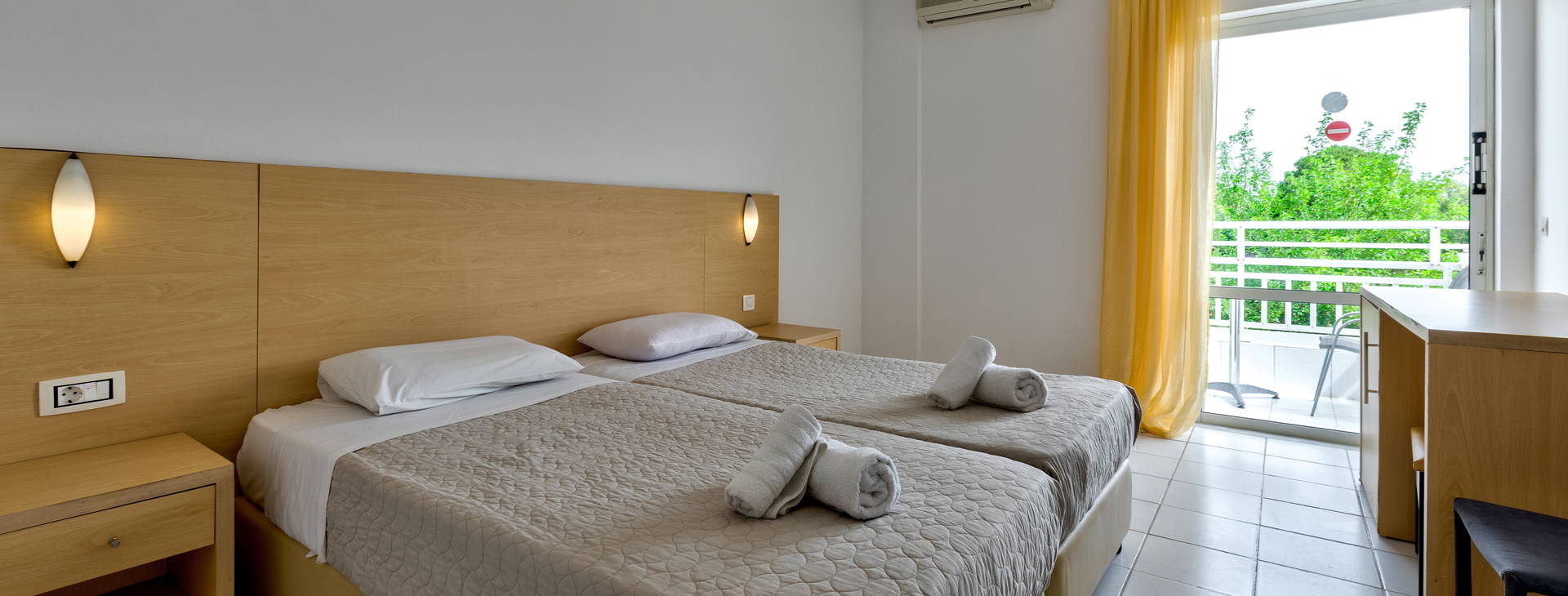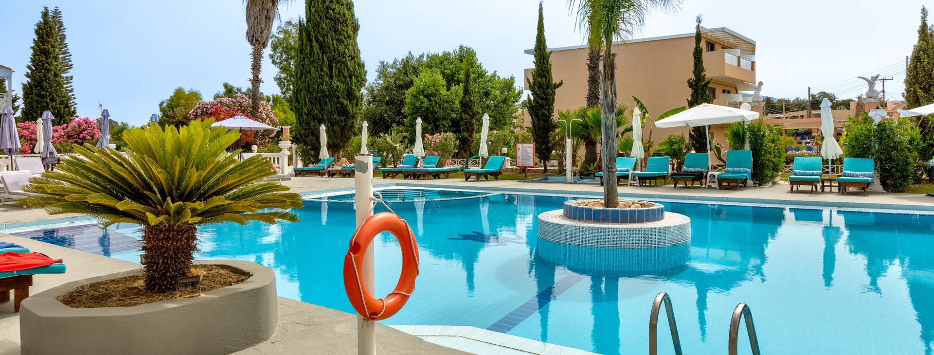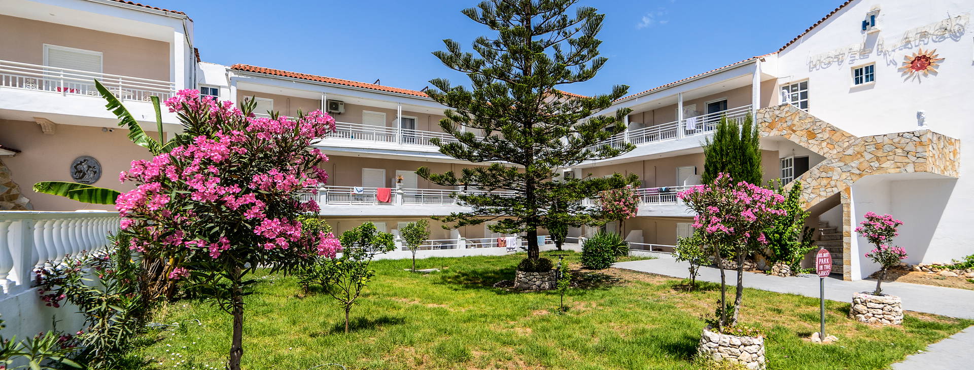 Hotel sa nachádza v Laganas, v juhovýchodnej časti ostrova, v zálive Laganas. Letovisko poteší predovšetkým nádhernou piesočnatou plážou, práve tu sa vyskytujú korytnačky Careta-Careta. Na ich ochranu bol vytvorený morský národný park. Samotné letovisko je živé a priťahuje davy turistov z celého sveta. Nájdete tu množstvo reštaurácií, krčiem a klubov, ktoré ponúkajú množstvo zábavy a radovánok až do skorých ranných hodín. Hotel sa nachádza približne na polceste. 300 metrov od centra a približne 4 km od letiska Zakynthos. Transfer trvá približne 15 - 20 minút. Cena nezahŕňa miestnu turistickú daň vo výške 0,50 EUR/izba/deň. Táto daň je povinná a platí sa priamo na recepcii pred ubytovaním klientov v hoteli.
