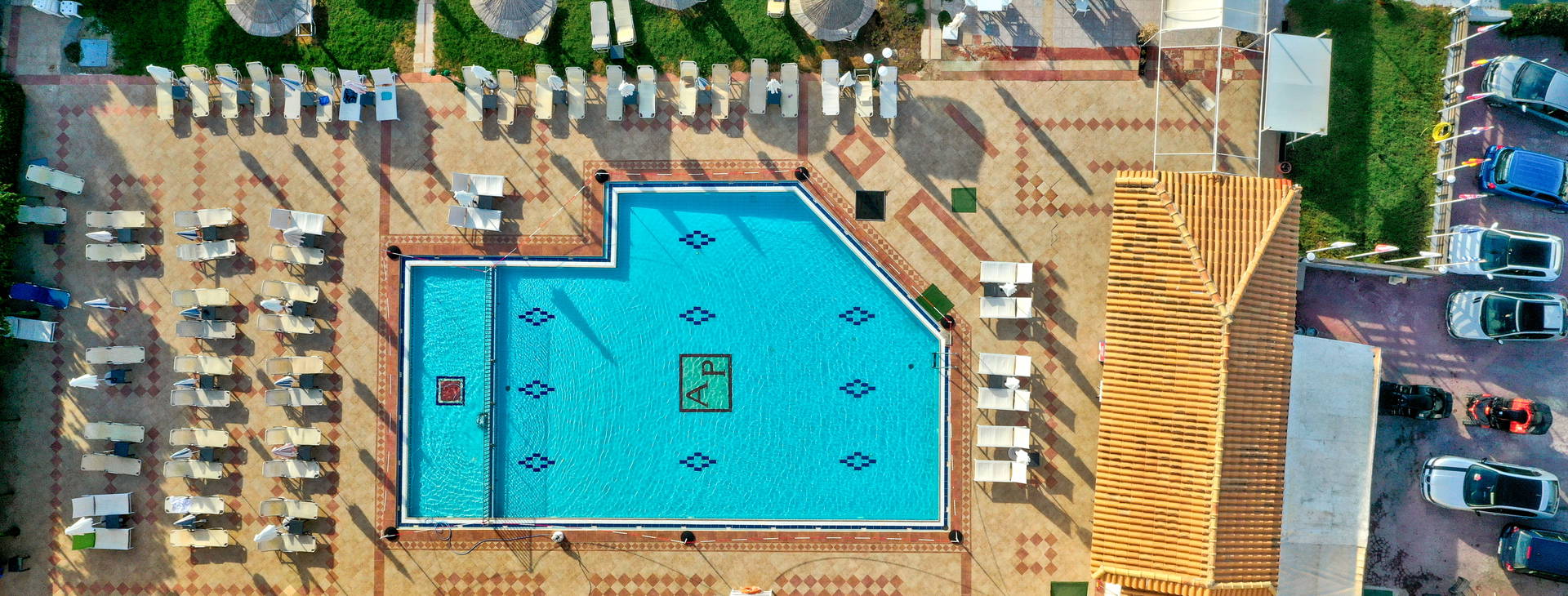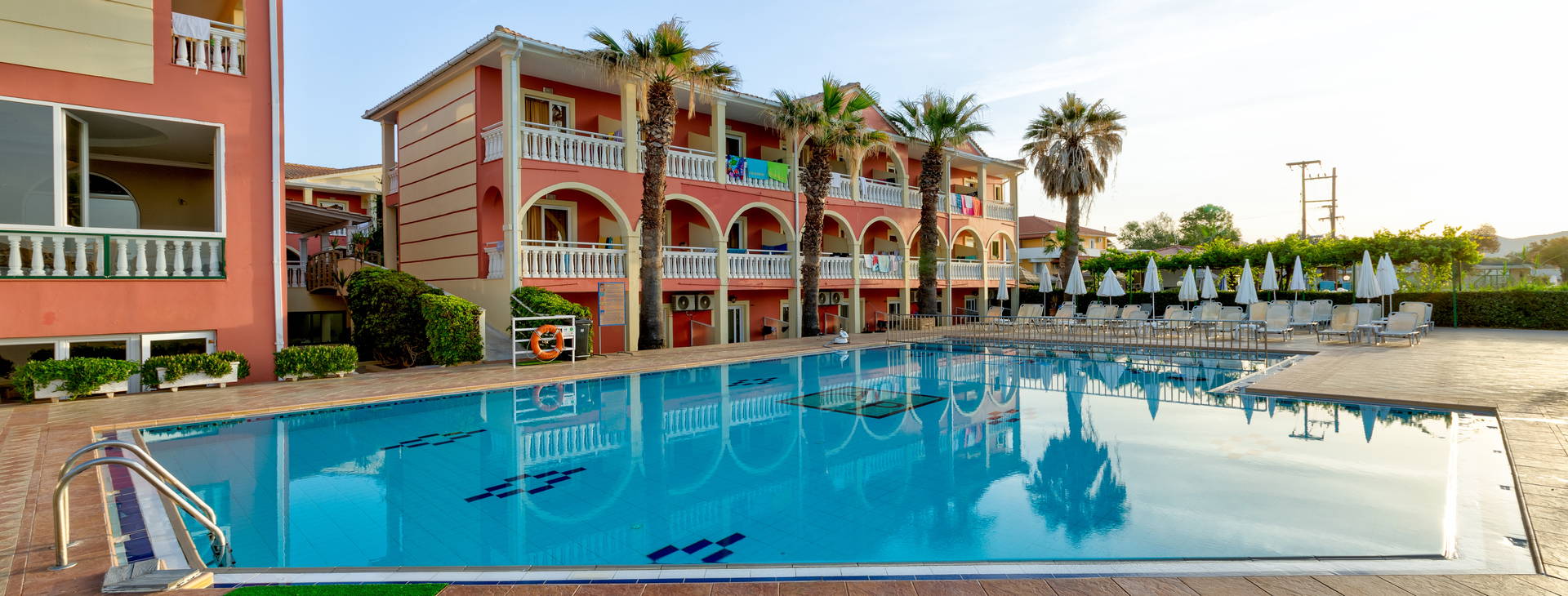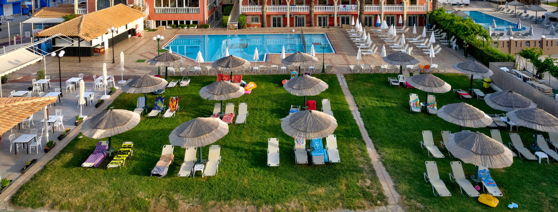 K dispozícii je bazén s bezplatnými ležadlami a slnečníkmi a samostatné detské brodítko.