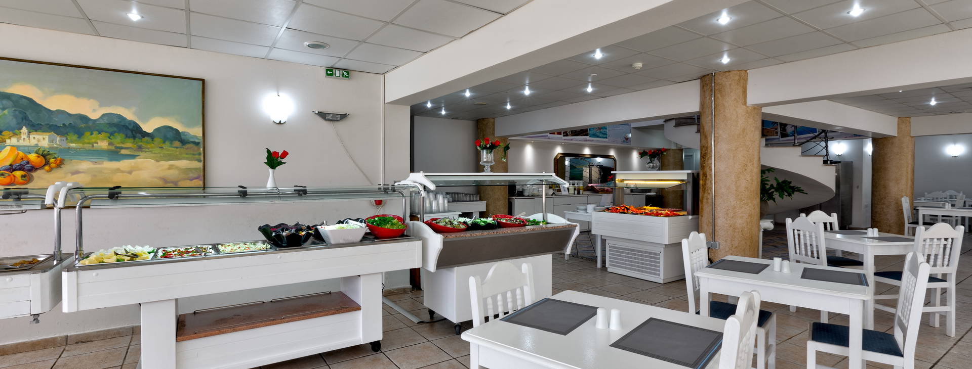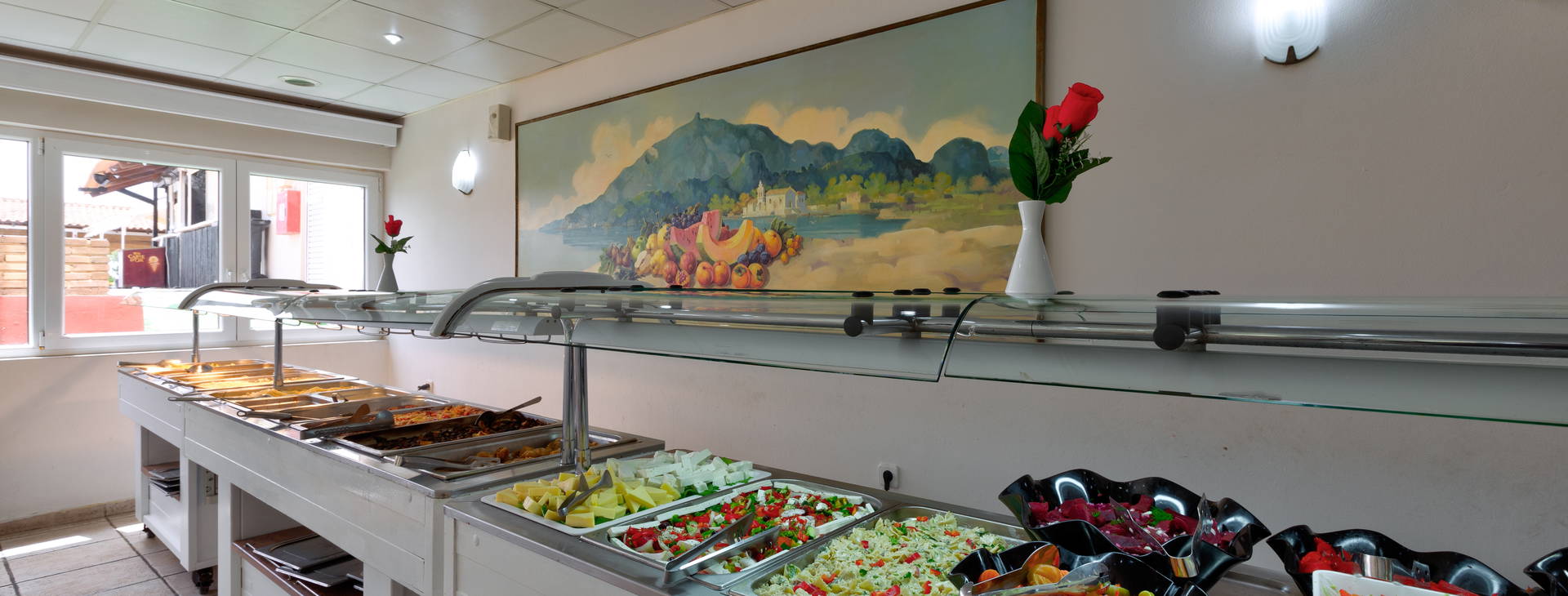 All Inclusive, ktoré zahŕňa stravovanie formou bufetu: raňajky (08:00 - 10:00), obed (12:30 - 14:00), večera (19:00 - 21:00). K dispozícii je aj bar pri bazéne, kde si môžete vychutnať občerstvenie od 11:00 do 12:00 a od 15:00 do 17:00. Miestne alkoholické nápoje (víno, ouzo, čapované pivo, brandy, gin, whisky, vodka, rum, tequila, likéry a drinky) a nealkoholické nápoje (voda, kola, ovocné šťavy, limonáda, káva, čaj, horúca čokoláda, mlieko) sú k dispozícii aj v bare pri bazéne od 11:00 do 18:00 a v hlavnom hotelovom bare od 18:00 do 23:00.