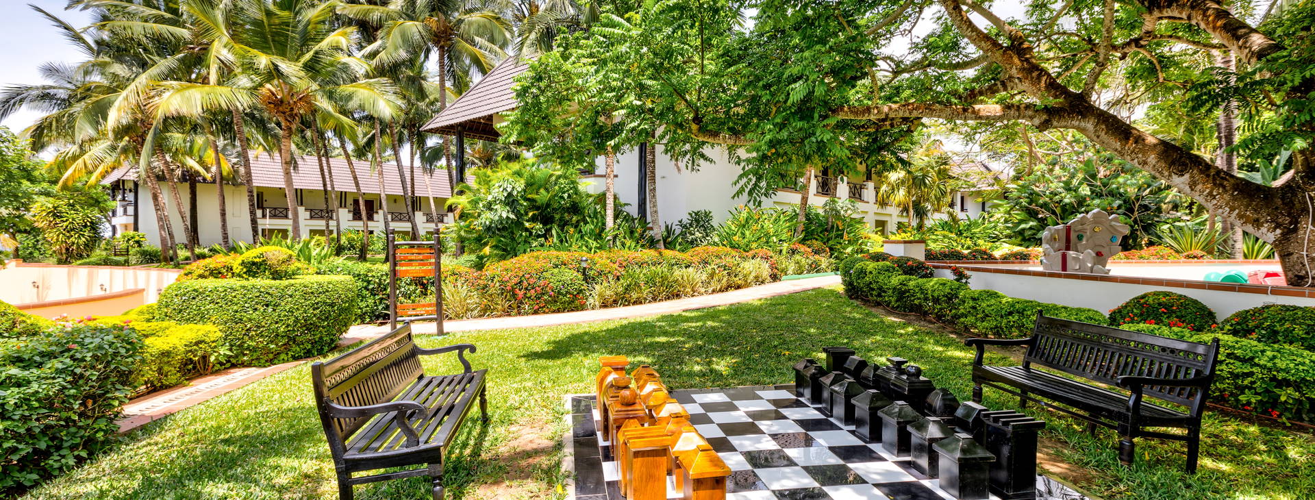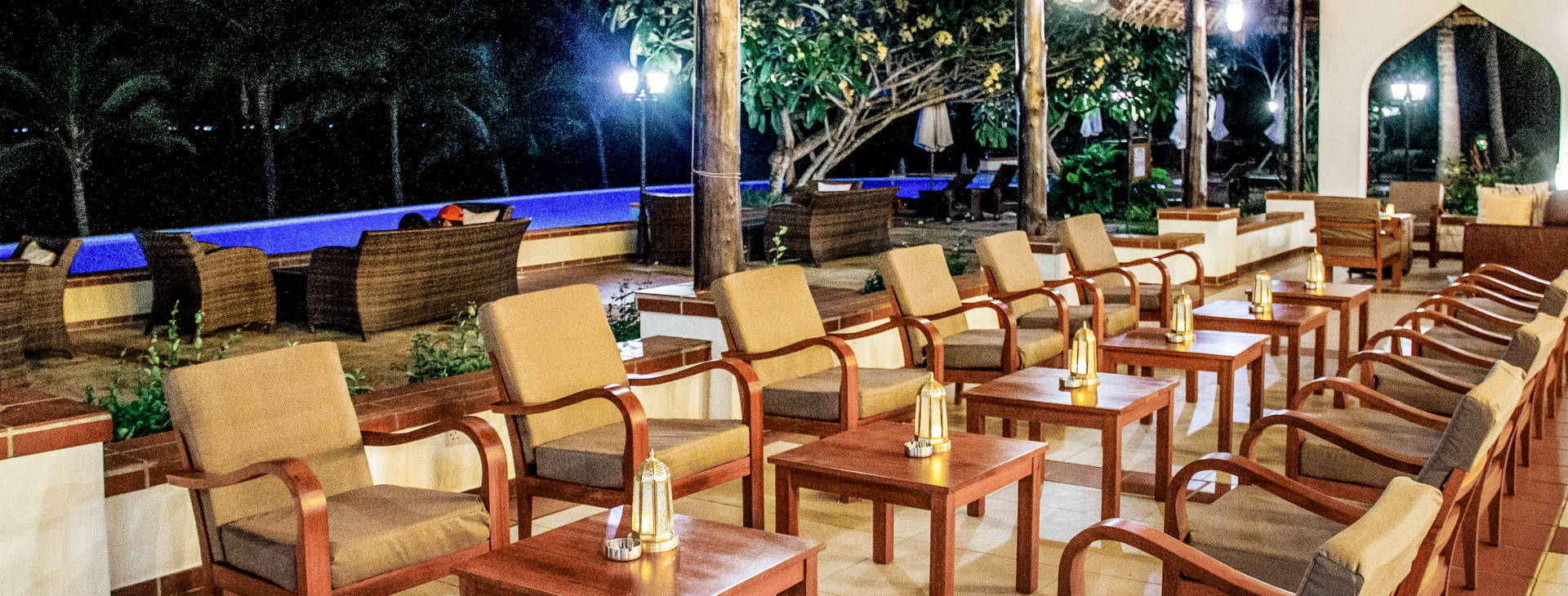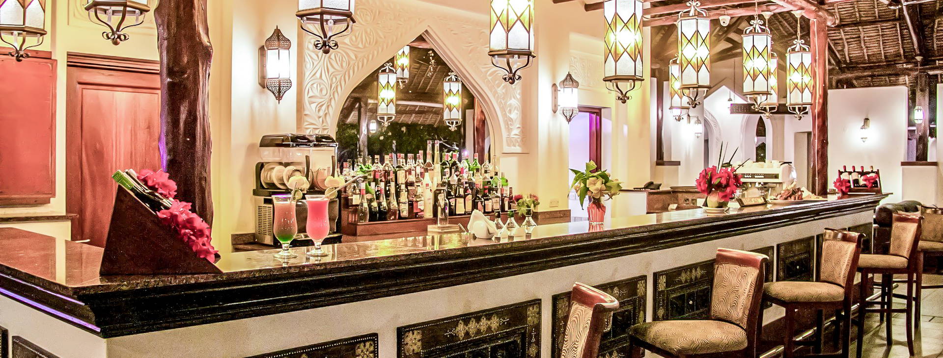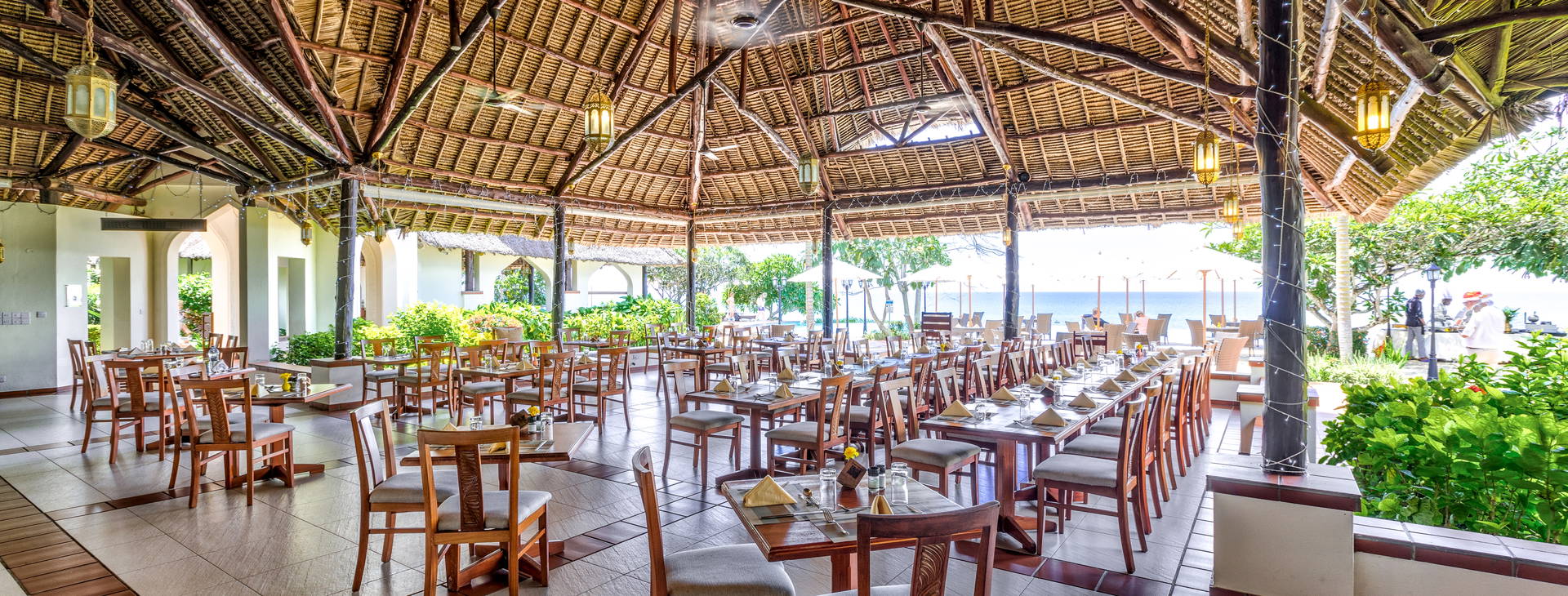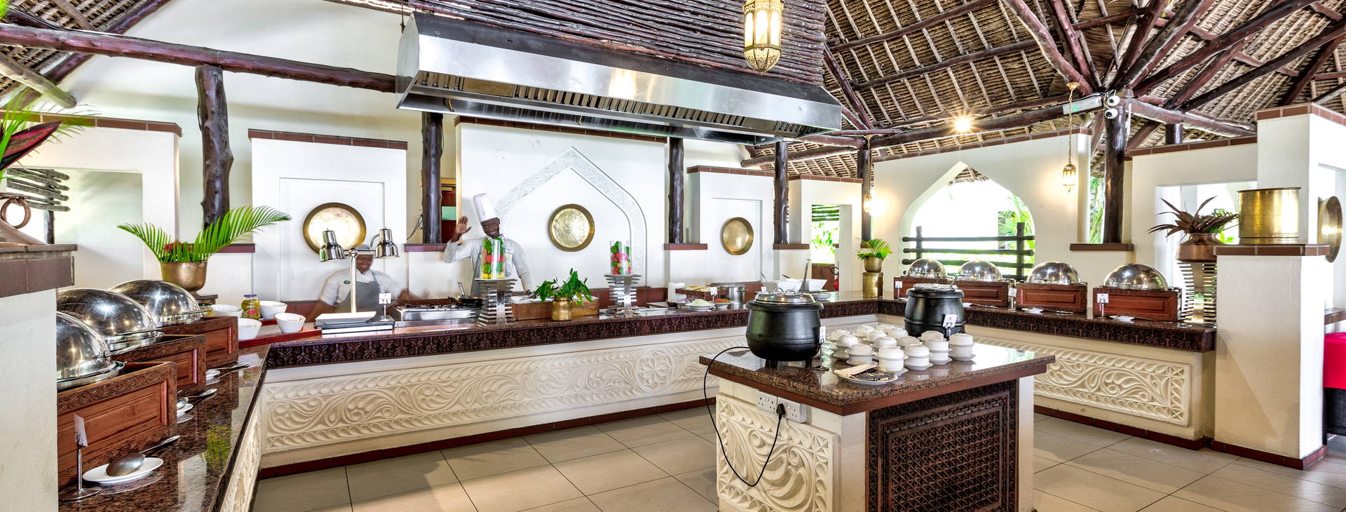 .Hodinová recepcia, priestranná vstupná hala, hlavná reštaurácia Mangapwani s miestnou a medzinárodnou kuchyňou a a'la carte reštaurácia Kobe (za príplatok), 3 bary: hlavný bar Zanzi-bar, Jetty bar na móle a plážový bar, dva bazény vrátane nekonečného bazéna s ležadlami a slnečníkmi zdarma a detský bazén. Ďalej: parkovisko, úschovňa batožiny, za poplatok: obchody, zmenáreň, práčovňa, požičovňa áut.