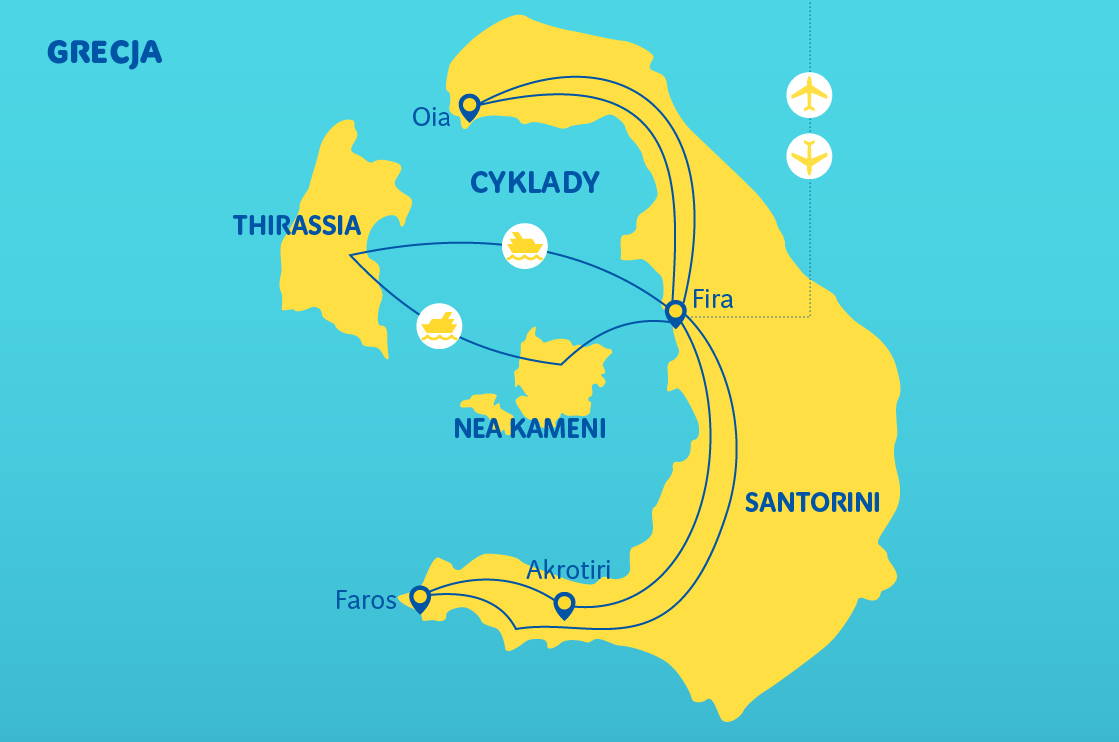 Základní cena zahrnuje: přelet charterovým letadlem na/z Santorini, letištní taxy, transfery: letiště - hotel - letiště, transfery: hotel - přístav - hotel, ubytování na Santorini (7 nocí), stravování: snídaně (7), služby polského průvodce/delegáta, balíček pojištění TU Europa varianta základní (úrazové pojištění a léčebné výlohy, trvalé následky, asistenční služby a pojištění zavazadel).