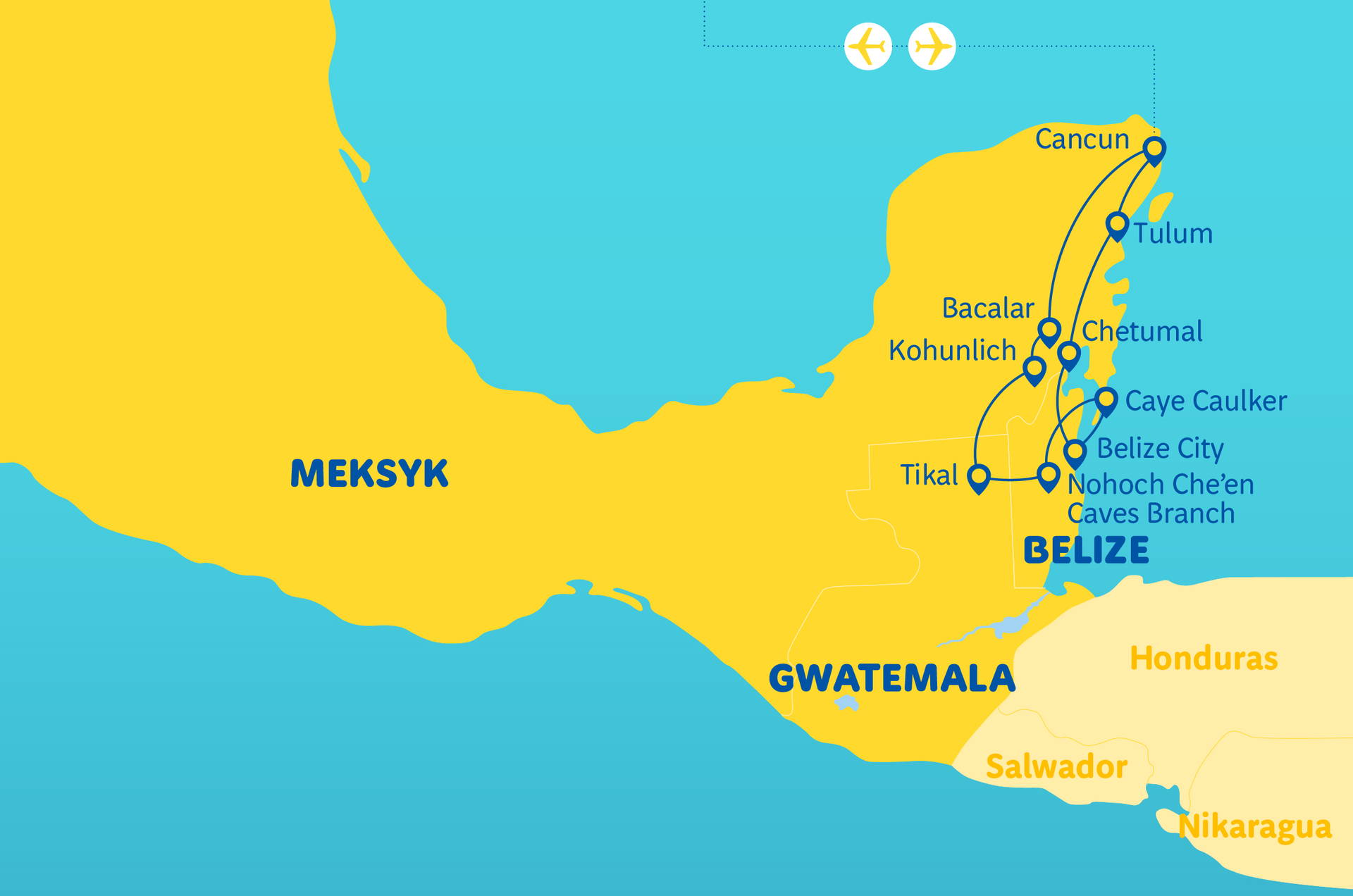 Název zájezdu v polském jazyce: Zaginione miasta Majów (Meksyk, Gwatemala i Belize)